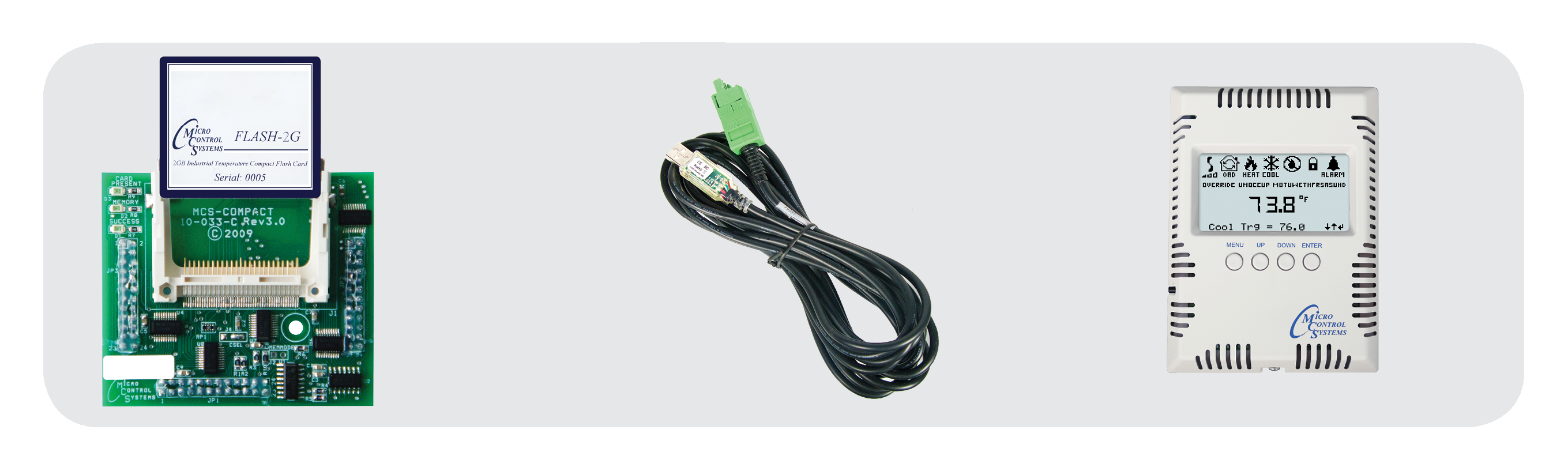 The MCS-THERMOSTAT is a temperature and humidity sensing smart device with a backlit LCD